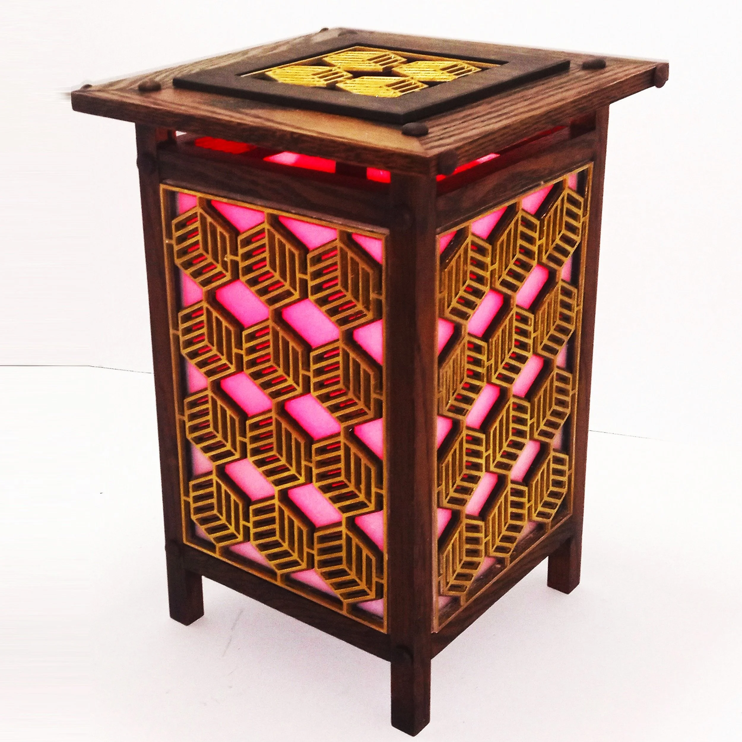 Open Top Shoji Style Inspired Red Oak Smart Lamp / Candle Lantern